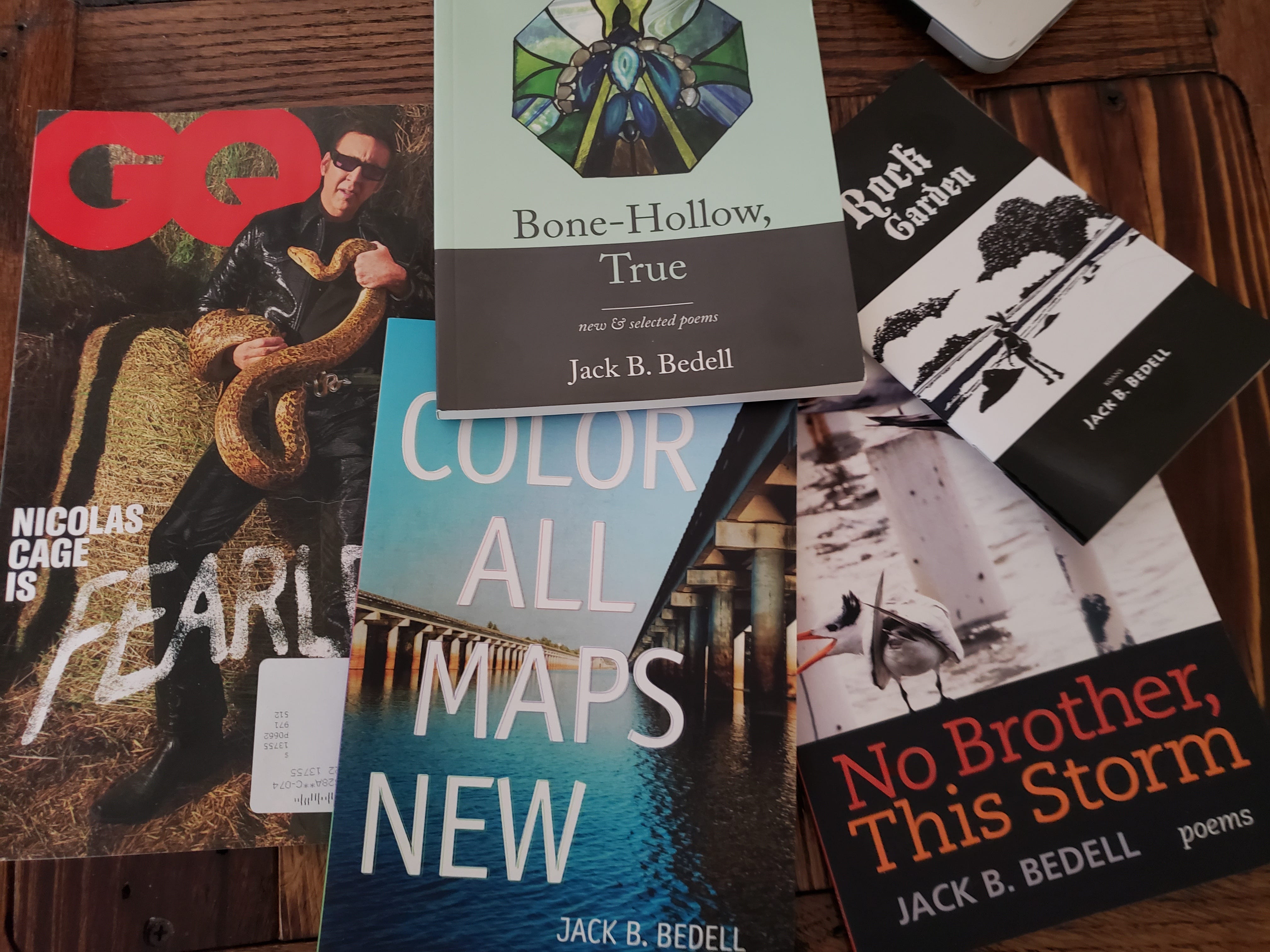 This Nicolas-Cage-holding-a-snake photo really ties in with random poetry books, no?